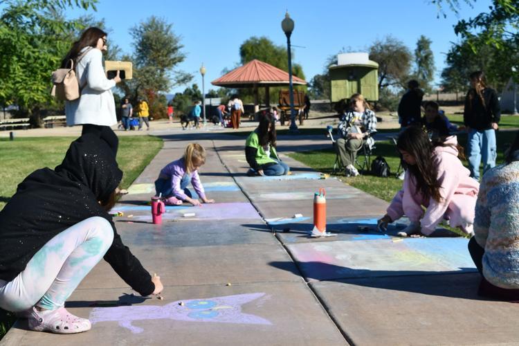 The Colorado River State Historic Park hosted its annual Sidewalk Chalk Art Contest on Saturday morning. Participants of all ages used chalk to create art on a sidewalk square, as individuals or as families, judged for their creativity and skill by local artists.