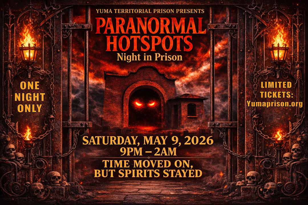 Ranked the #3 Best Haunted Destination in America, the Yuma Territorial Prison unlocks its gates for one chilling night of after-hours paranormal investigation inside its century-old cell block—until the witching hour strikes. Whether you're a seasoned investigator or a curious thrill-seeker, this is your chance to explore where history and paranormal mysteries collide.