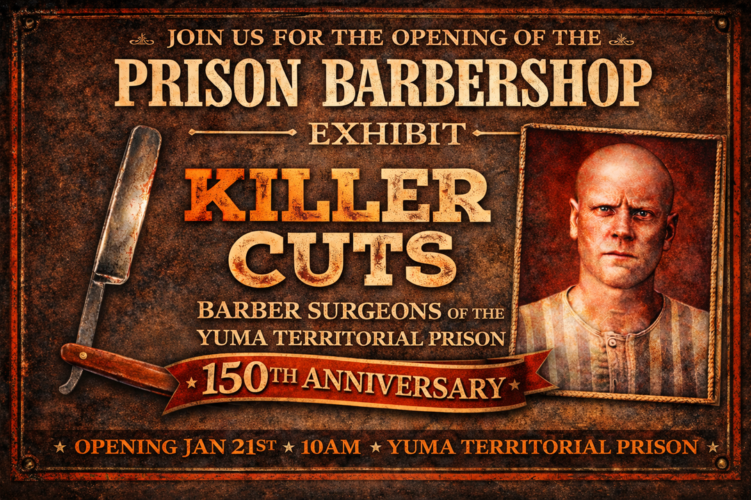 In celebration of the Yuma Territorial Prison’s 150th Anniversary, we proudly unveil the new Prison Barbershop Exhibit. Kindly join us on Wednesday, January 21st at 10:00 am for the opening ceremony. A special musical presentation will be performed by the Yuma Barbershop Harmony Chorus.