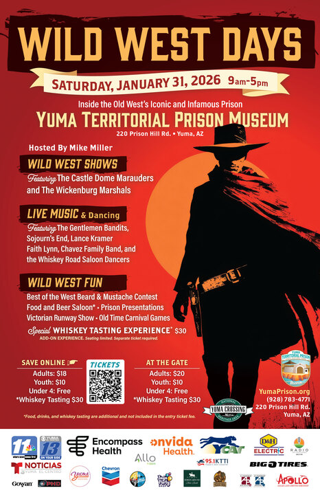 So grab your boots, your hat, and your sense of adventure — Wild West Days is calling you to the Yuma Territorial Prison. See you in prison!